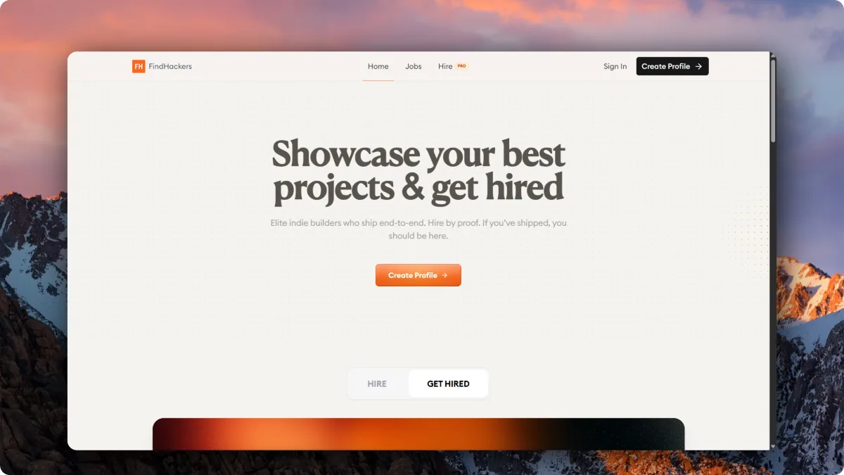 Showcase your best projects & get hired. Elite indie builders who ship end-to-end.